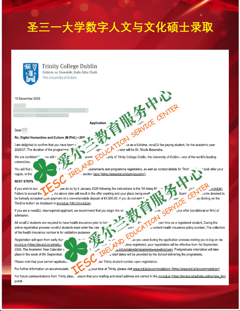 圣三一大学 (TCD) 2026年OFFER
