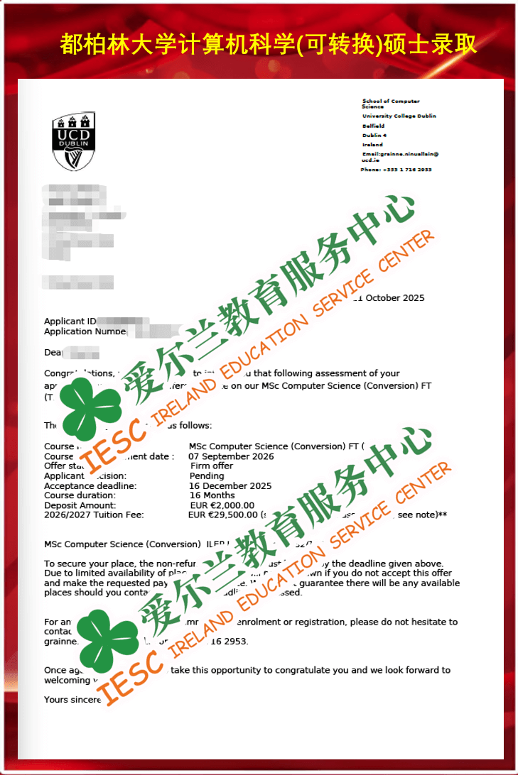 来自清华大学英语语言文学专业本科(&法国HEC Paris金融硕士)同学,顺利获得了爱尔兰都柏林大学(University College Dublin)计算机科学-可转专业硕士课程(MSc Computer Science-conversion)的无条件录取通知书。